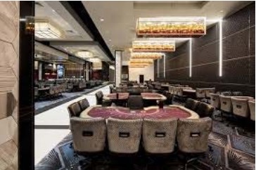 The classic Hollywood Park Casino adjacent SOFI Stadium has been renovated from a more traditional gaming house to a Las Vegas level experience with a grans lobby, luxury interiors consisting of a lounge, table games and off track betting, Rich materials, finishes and furniture provide the background while maintaining profitability and security.